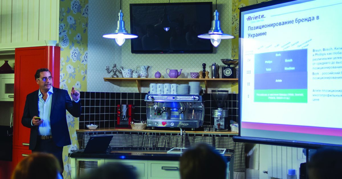 Ariete. Презентация новых продуктов и самого бренда состоялась в кулинарной студии "Картата Потата". Без преувеличения можно отметить, что пасмурный осенний день буквально взорвался яркими цветами разнообразных образцов полезной техники от Ariete. Так, превратить скучную обыденность на разноцветную и комфортную жизнь - основная философия этого итальянского производителя. И действительно, его продукция побуждает смотреть на привычные вещи и процессы под совсем другим углом! "Творчество – это основная составляющая в нашем производстве", - заявил Paolo Laratta, директор по маркетингу компании Ariete. "Каждая вещь, каждое изделие должно быть оригинальным, в нем должны быть огонек, душа, лицо, ведь все что мы делаем, мы делаем для людей, их комфорта и уюта. Мы продуцируем чувства", - отметил он. Именно поэтому, к проектированию и производству продуктов, Ariete привлекает лучших дизайнеров, стилистов, художников по всему миру! И даже более, компания, в поисках оригинальных идей, сотрудничает с талантливыми студентами вузов. Все это выливается в итоге в качественный, концептуальный продукт с присущим итальянцам вкусом и элегантностью. Оригинальный дизайн изделий, невероятная палитра цветов и внимание к мельчайшим деталям призваны вдохновлять пользователей к творчеству и экспериментированию. А еще, эта чрезвычайно полезная техника действительно добавляет души любому жилищу и становится его украшением. Вниманию приглашенных участников презентации было представлено более 70 образцов самой разнообразной техники для дома: мощные паровые очистители, высокотехнологичные печи гриль и утюги, пылесосы, электрочайники, тостеры и компактные аппараты для приготовления попкорна. И конечно, куда же без ароматного вкусного итальянского кофе, в которой итальянцы являются настоящими знатоками и экспертами! Непревзойденные кофеварки без проблем приготовят чашечку настоящего итальянского эспрессо за считанные минуты.
